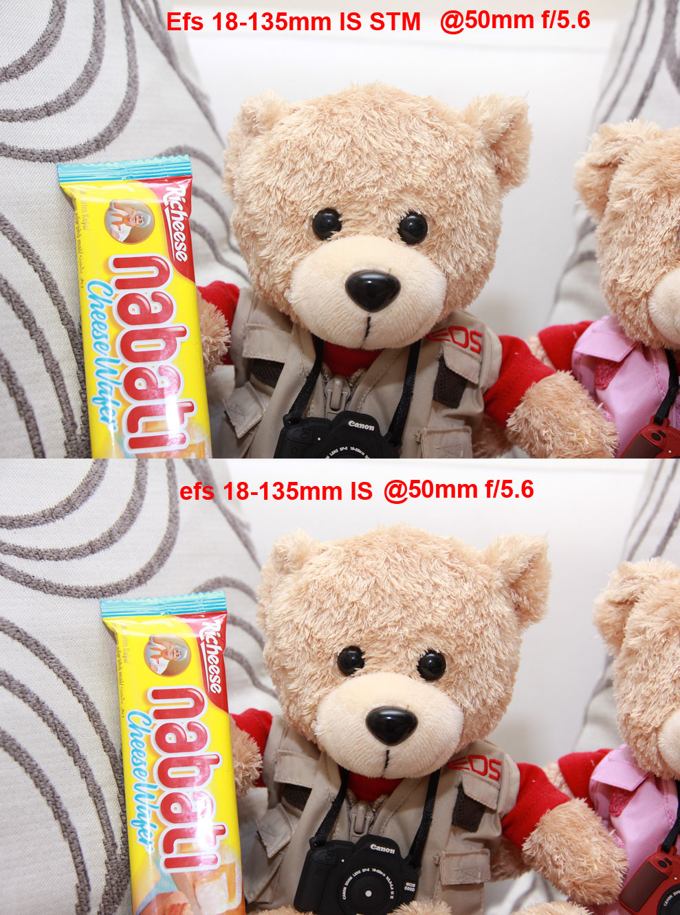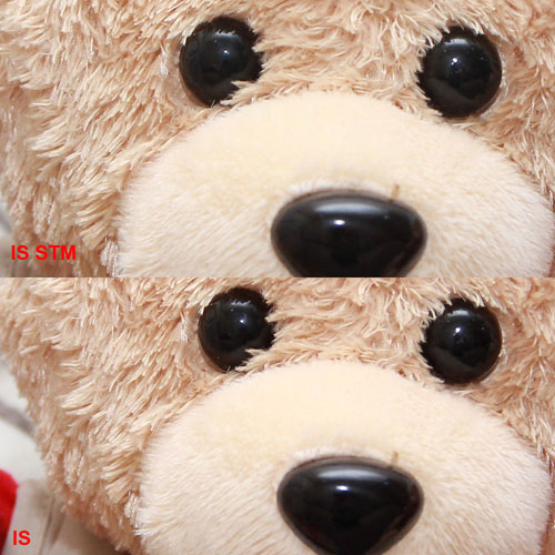 Contrast/ketajaman: Efs 18-135mm IS STM menunjukkan hasil yang beda. bulu2 pada boneka tampak lebih jelas dan tajam.